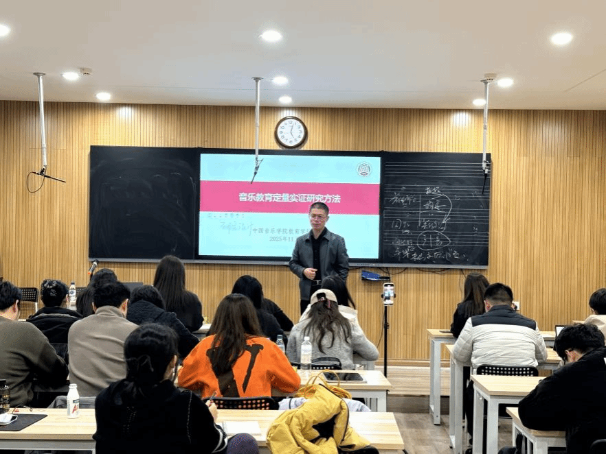 2025年11月8日至9日,中国音乐学院教育学院院长、博士生导师、北京大学教育学博士郭彪教授应邀来到东北师范大学音乐与舞蹈学院,以《音乐教育定量实证研究方法》为题,围绕定量实证研究的理论框架与实践路径,系统阐述了音乐教育实证研究的核心理念与操作方法。讲座由音乐与舞蹈学院院长刘欣教授主持,学院教师代表、全体博士生和硕士研究生积极参与。
